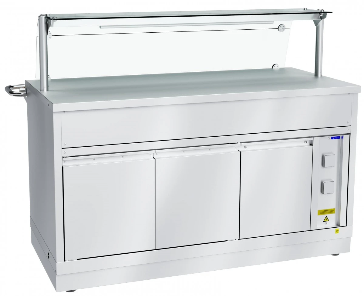 Габаритные размеры: 1500х1016х1217мм, напряжение 220В, 2 розетки на 16 А Прилавок для горячих напитков предназначен для кратковременного хранения и раздачи потребителю хлебобулочных и кондитерских изделий, а также для установки на его столе термостата и кипятильника. - направляющие без стыков - супы и напитки не прольются во время движения подноса (идут в комплекте) - цоколь по нижнему краю закрывает просвет от пола до корпуса элементов - пыль не скапливается под изделиями - внизу нейтральный шкаф для хранения кухонного инвентаря - регулируемые по высоте ножки.