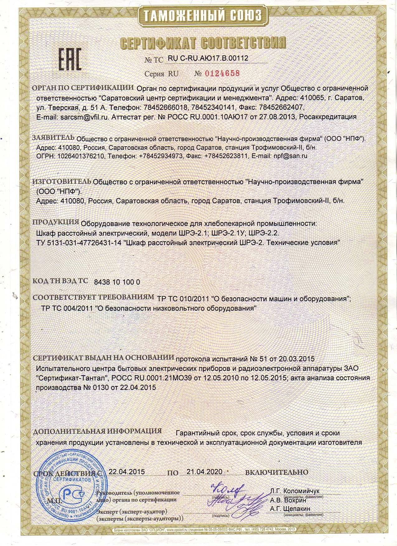 соотвествияЕАЭС N RU Д-RU.НВ54.В.07860/20