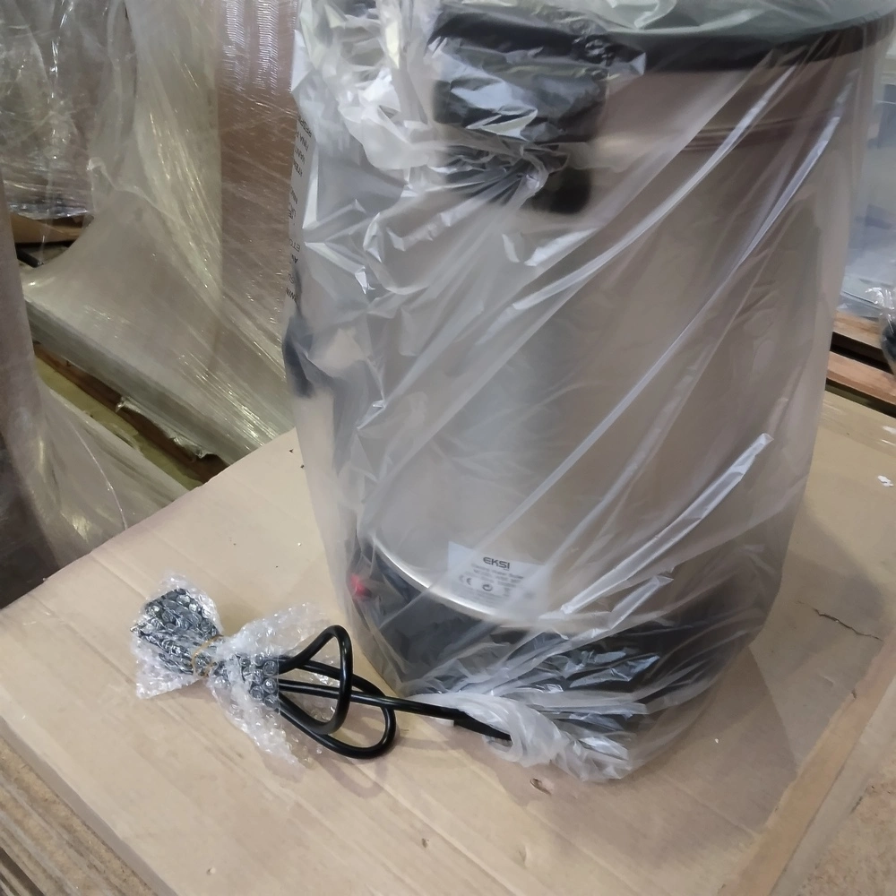 Кипятильник т.м. EKSI серии WBE, мод. WBE 30T, Габариты (ДхШхВ): 385х385х525 мм, Номинальный объем: 30 л, Полезный объем: 21,6 л, Напряжение: 220В, Мощность: 2500Вт, Термоконтроллер, Материал изготовления: нержавеющая сталь+пластик