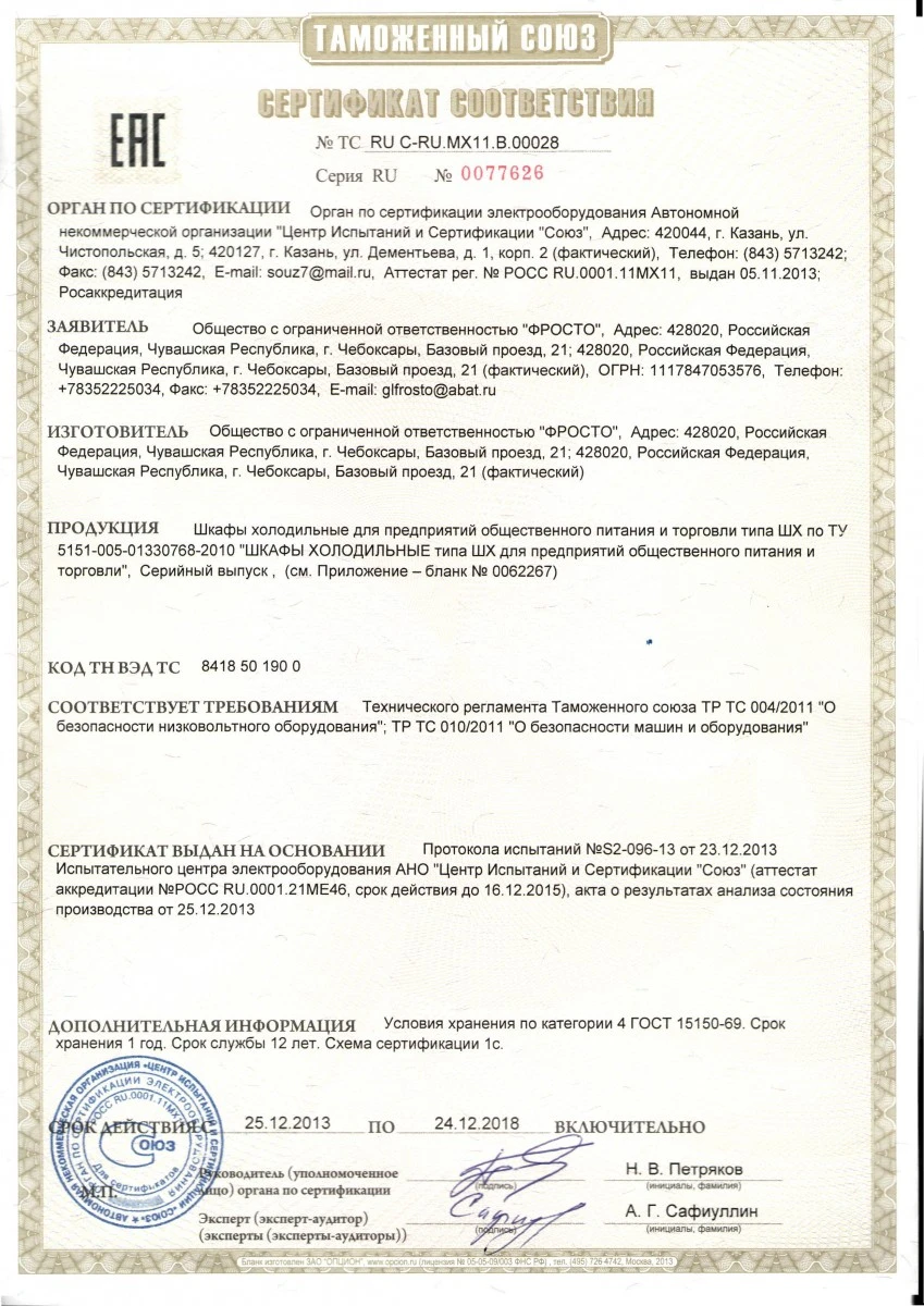 соотвествияЕАЭС N RU Д-RU.РА01.В.66114/21