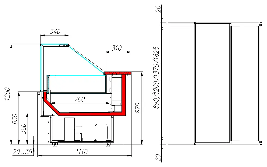 Витрина морозильная Carboma GC110 SL 1,5-1, RAL 9006
