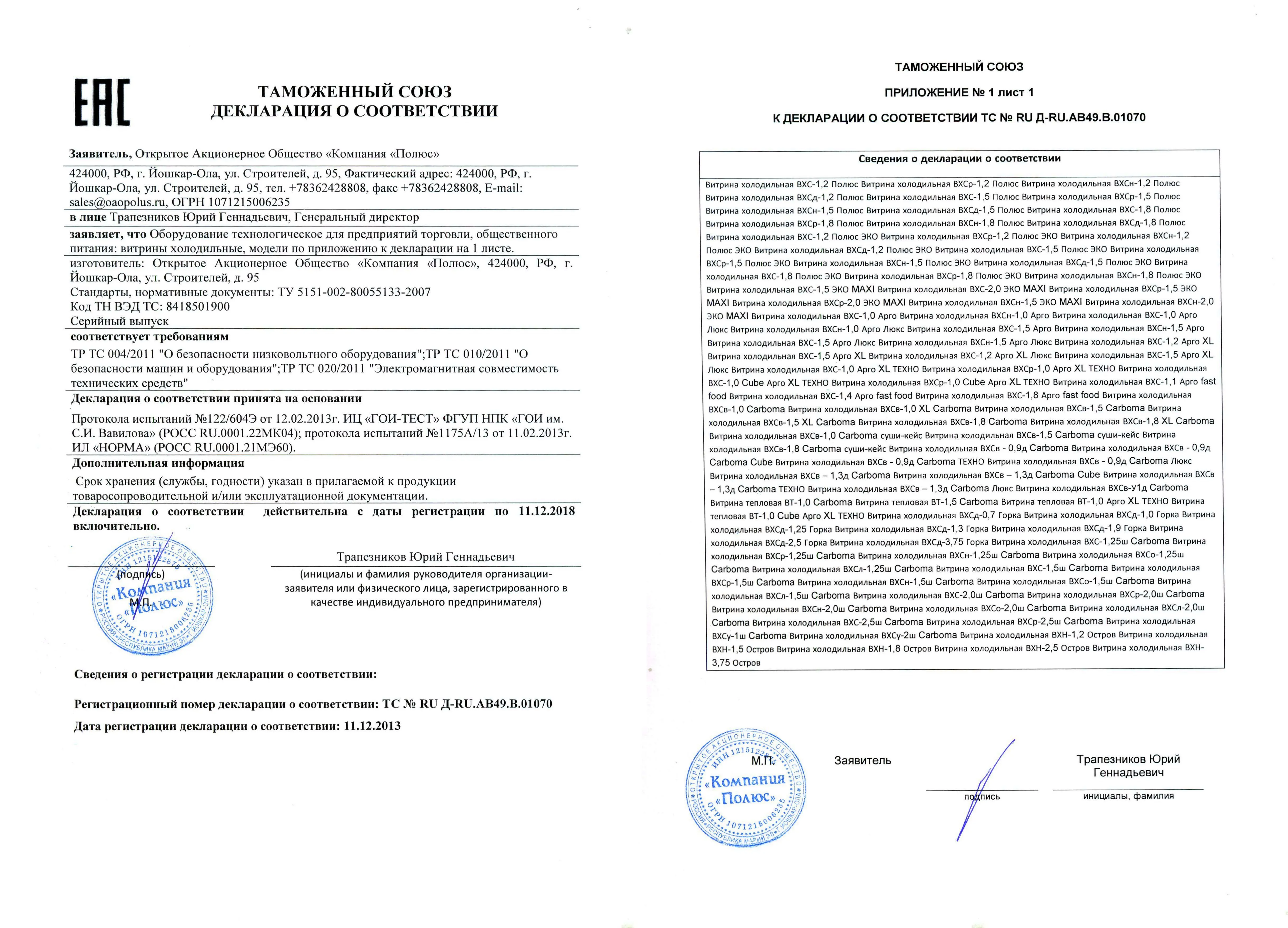соотвествияЕАЭС N RU Д-RU.РА10.В.61031/23